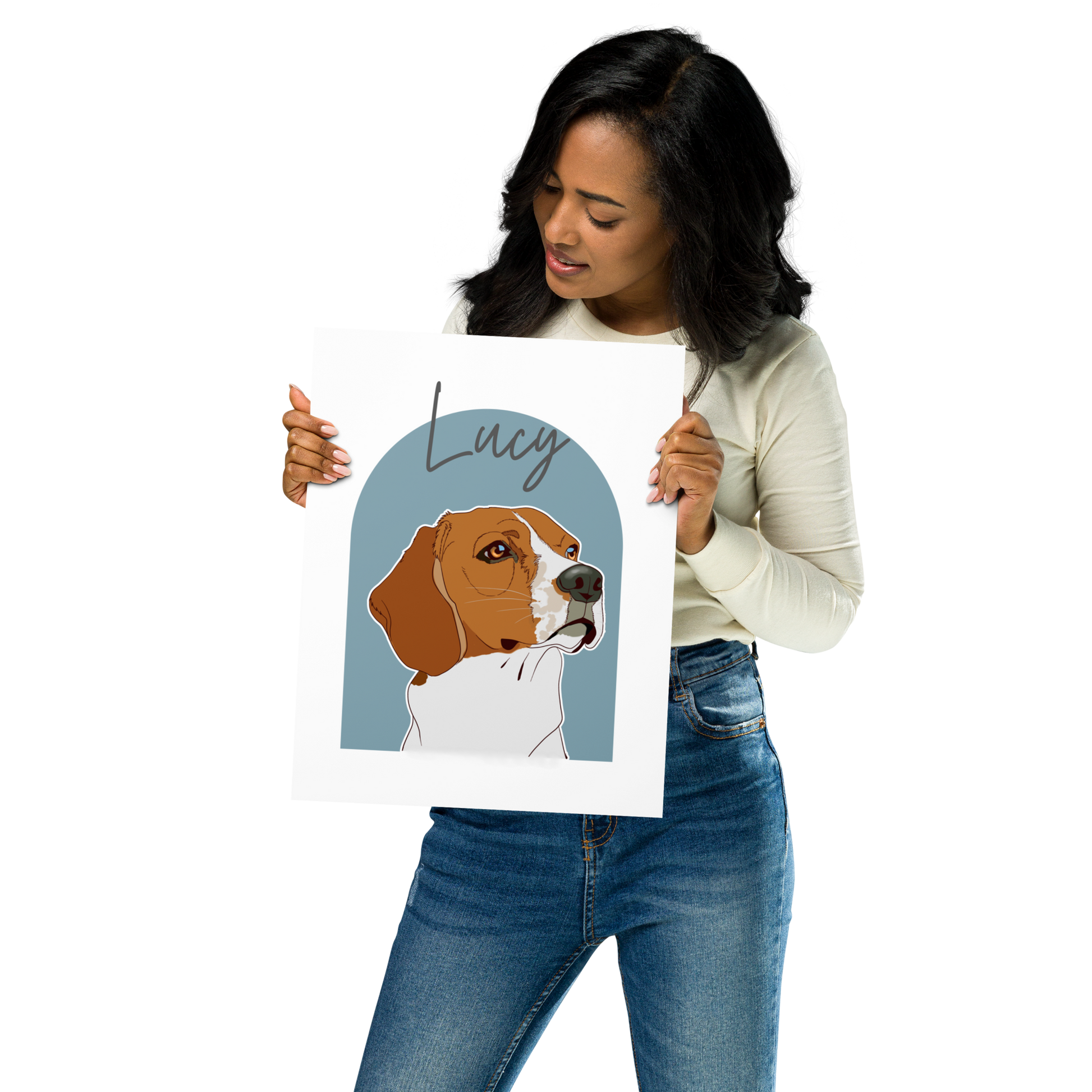 I’ll create a custom illustration based on your photos. Choose your background style — and if you select an arch, you can request a specific color or let me choose one that complements your pet perfectly.